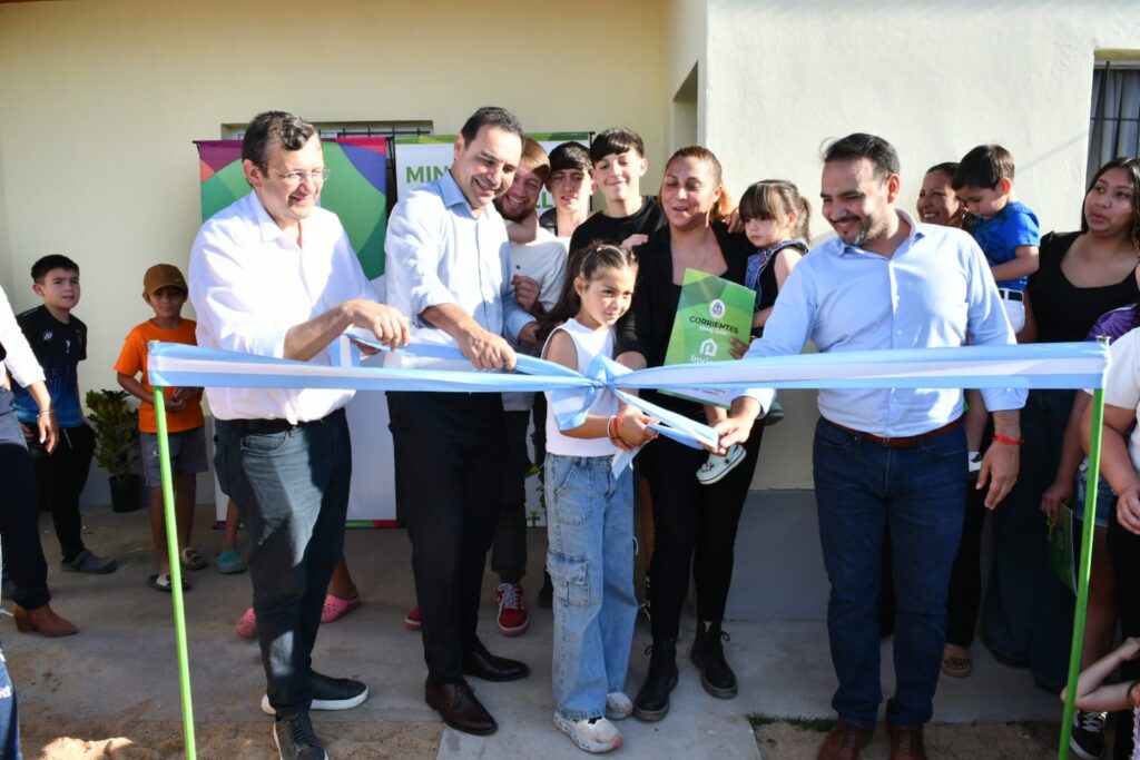 El gobernador Gustavo Valdés inauguró este jueves en el barrio Matadero de San Cosme 20 viviendas pertenecientes al programa provincial Oñondivé. Allí, anunció la construcción de 30 soluciones habitacionales más de demanda libre. Además, habilitó 13 km de ripio sobre la Ruta Provincial N°1 de la localidad.